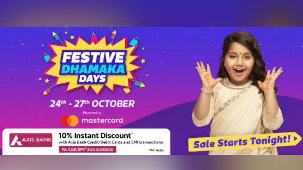'ফেস্টিভ ধামাকা ডেজ’ সেলে ফ্লিপকার্ট গ্রাহকরা নো কস্ট ইএমআই এর মাধ্যমে কেনাকাটার সুবিধা পাবেন। এছাড়াও ডেবিট কার্ডের মাধ্যমে ইএমআই এর সুবিধা দেবে ফ্লিপকার্ট। অ্যাক্সিস ব্যাঙ্ক গ্রাহকরা এই সেলের অধীনে বিশেষ ছাড় পাবেন বলে জানিয়েছে ফ্লিপকার্ট। অ্যাক্সিস ব্যাঙ্ক ক্রেডিট ও ডেবিট কার্ড গ্রাহকরা 'ফেস্টিভ ধামাকা ডেজ’ সেলে বিশেষ ছাড় পাবেন। এছাড়াও ফোনপে গ্রাহকদের বিশেষ ছাড় দেবে ফ্লিপকার্ট।